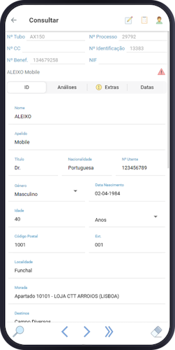 Pesquise por dados específicos de um utente e desbloqueie funcionalidades exclusivas com a selecção.
