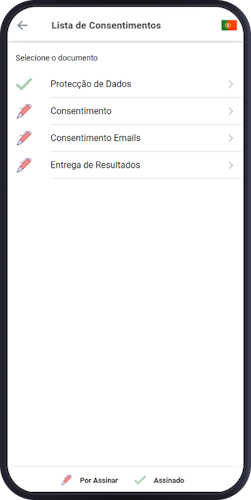 • Assinatura e consulta de consentimentos disponíveis.